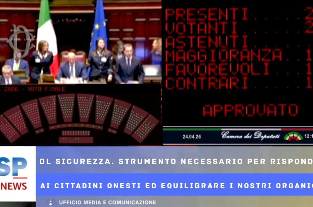 FSP TG-NEWS 25 aprile 2026. DL Sicurezza. Strumento necessario per rispondere ai cittadini onesti ed equilibrare gli organici delle forze dell’ordine