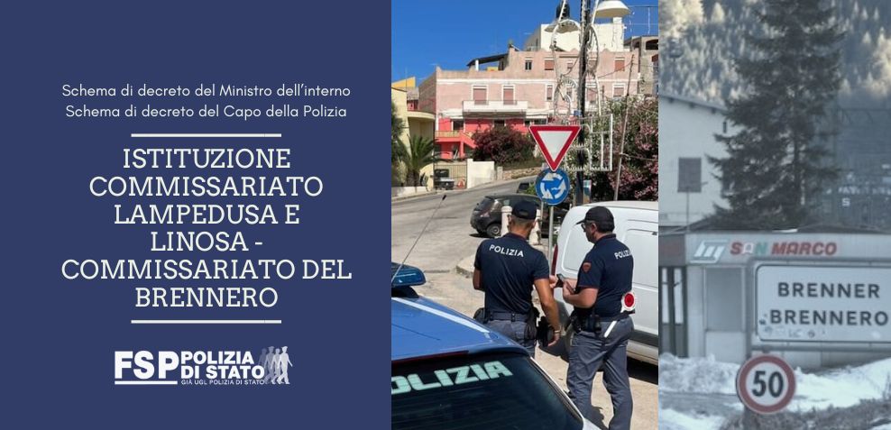 OGGETTO: Istituzione del Commissariato distaccato di pubblica sicurezza di Lampedusa e Linosa (AG) con attribuzione di polizia di frontiera e trasformazione del Commissariato distaccato di pubblica sicurezza, con compiti di frontiera, di Brennero (BZ) in Ufficio di polizia di frontiera terrestre, con funzioni di commissariato: